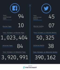 According to the list available with Digital Rights Monitor, 250 social media accounts included 45 Twitter accounts, 94 Facebook accounts and unidentified number of Instagram and YouTube accounts.